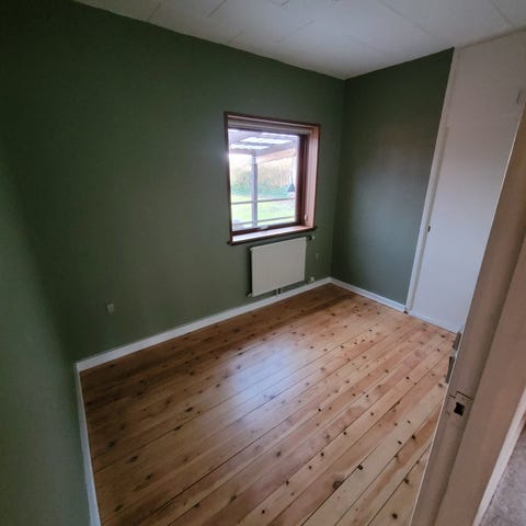 Samme mængde er brugt til nymaling af værelse på 6 kvadratmeter (se billede), hvor det rakte fint.