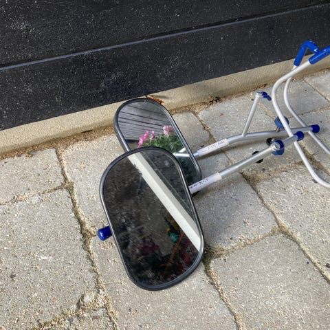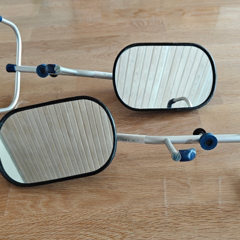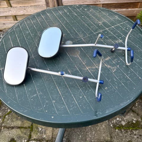 Fine campingspejle, som har siddet på Renault bil.