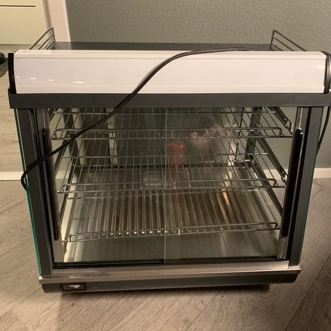 Scandomestic varmedisk i bordmodel med glasvægge og kabinet i rustfrit stål. Enheden har hylderist indvendigt og frontbetjening med tænd/sluk-knap og temperaturregulering. Velegnet til opvarmning og opbevaring af madvarer som f.eks. bagværk eller færdigretter i café, kantine eller butik. Strømtilslutning via almindelig nettilslutning. Nærmere tekniske data fremgår af typeskiltet på siden af enheden.