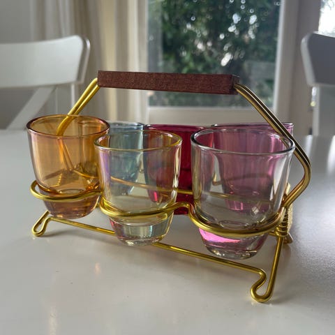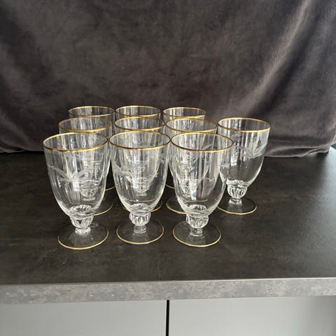 Snapse/shotglas med guldkant og riflet mønster