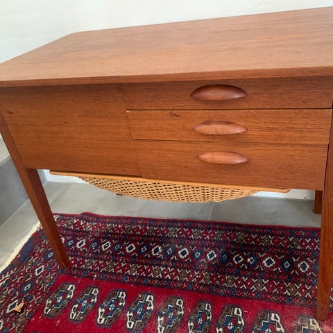 Teaktræs Sybord/Sofabord/Entré bord med opbevaring og hjul