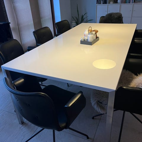 Hvid bordplade.