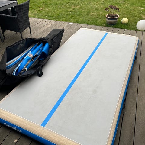 Rytmegulv 1x3 meter sælges. Super god stand, med massere af år i sig endnu. Perfekt til at øve Teamgym momenter hjemme i haven eller i stuen.