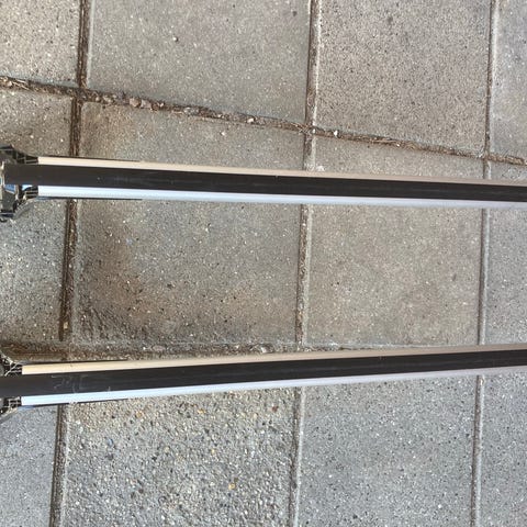 Tagbøjler til Renault grand scenic i metal og plast. Sættet består af to tværstænger med sorte plastfødder og sølvfarvede metalprofiler. Fastgøres via integrerede beslag i fødderne.