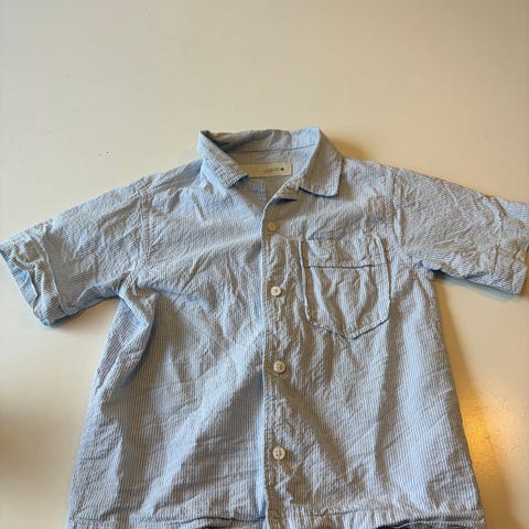 Zara skjorte til dreng i str. 122. Skjorten er lavet i bomuld og har korte ærmer. Den er multifarvet med et mønster i blå og lyse nuancer. Modellen har krave, gennemgående knaplukning foran og brystlomme.