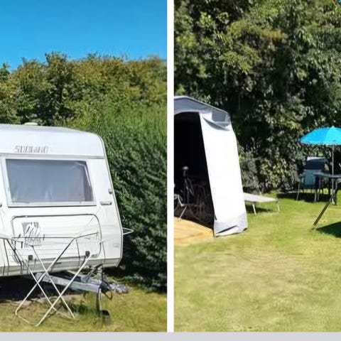 Adria Acampingvogn med 3 meter dyb fortelt. Velegnet til campingbrug med mulighed for både kortere ture og længere ophold.