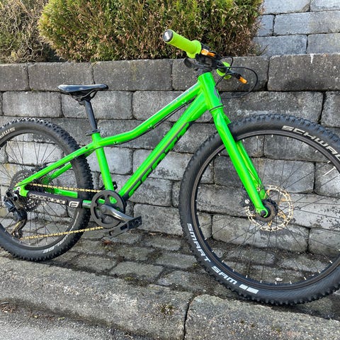 Lækker Scott alsidig og let børnecykel med 24" hjul – perfekt til både hverdag og fritid. Den er nem at håndtere, har 7 gear og hydrauliske skivebremser, hvilket gør den ideel som første rigtige mountainbike til unge eventyrere.