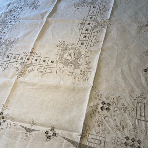 Vintage hvid broderet dug, 83x78 cm i god stand