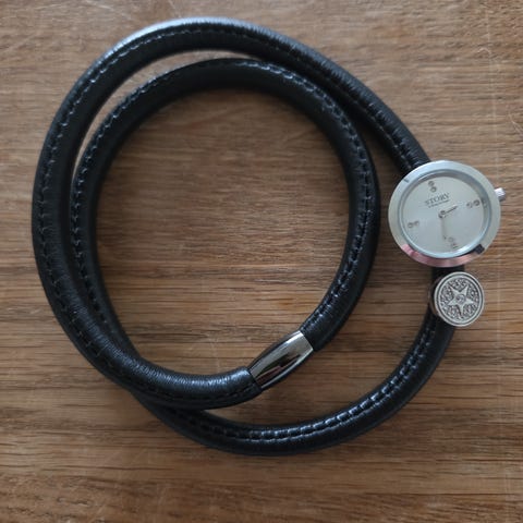 Armbånd, sølv, Krans & Ziegler Story, Super fint ur med 5 charms. Armbåndet er i lammeskind og magnetlukning.