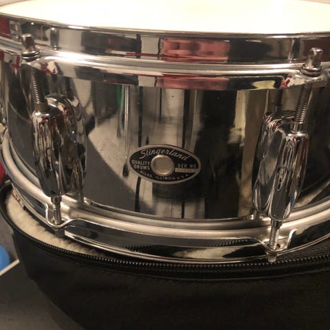 Sælger denne gamle klassiker, som jeg selv er vokset op med. En ganske glimrende snare til budget pris. Den trænger til en kærlig hånd og skal lige justeres i seidingen. En pudsning vil heller ikke skade. Ellers står den rigtig flot med gode skind etc. Super snare til prisen!