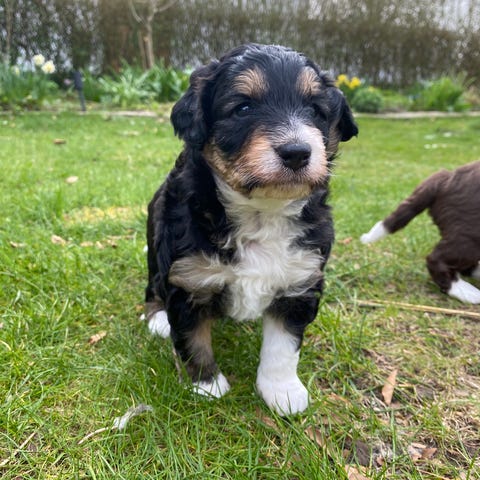 Vi har den 27/3 fået hvalpe på vores elskede hund Sally. Hun fik 3 skønne små- 2 sorte piger( de vil ligesom Sally højst sandsynligt ende med at blive mere og mere grå) og 1 brun dreng. ❤️ den ene pige er afsat, så der er hannen og en lille sort pige tilbage🙏