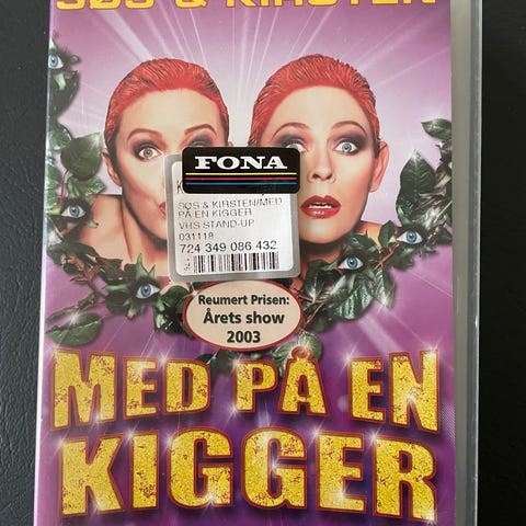 Søs & Kirsten Med på en kigger dvd. Showoptagelse med komikerduoen Søs Egelind og Kirsten Lehfeldt. Udgivelsen indeholder sceneshowet samt bonusmateriale nævnt på omslaget. Format: dvd med dansk tale.