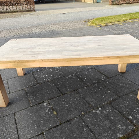 Flot spisebord i massiv egetræ m. 2 tillægsplader