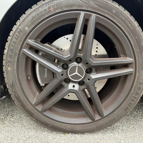 4 x Super smarte sorte alufælge fra Dezent - med vinterdæk. Har siddet på en Mercedes Benz, A-klasse, nyeste model 2018+ (W177). Kun ganske få brugsspor. Nypris: 16.995 kr. Kun kørt én sæson. Kan evt. leveres.