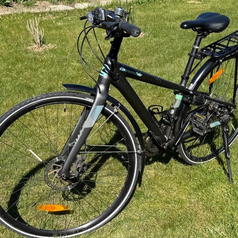 Cyklen er fra 2013, men der er kun kørt max. 10 ture på den. Den har stået inde altid. Monteret med nye dæk. Sadlen har en lille misfarvning efter cykelshorts. Monteret med godkendt lås og bagagebærer.
