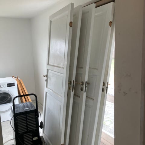 Dørene har klassiske fyldninger og er velegnede til indvendig brug i bolig eller lignende.
