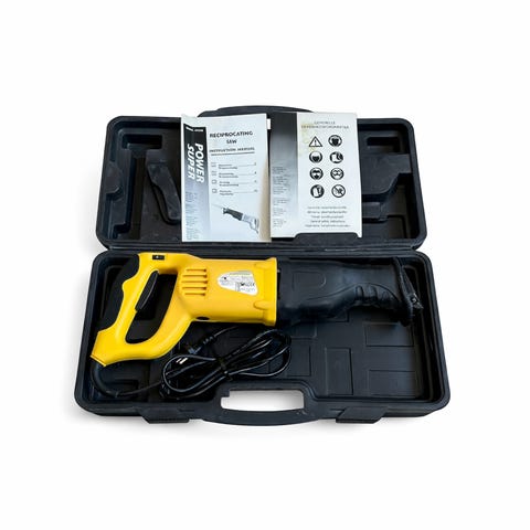 Power Craft bajonetsav med en motoreffekt på 710 W. Værktøjet er egnet til grovskæring og til at save i forskellige materialer som træ og metal, afhængigt af det anvendte klingevalg.