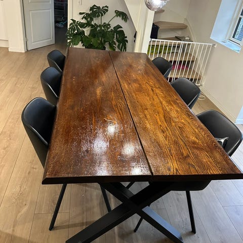 Ægte massivt plankebord 300x80 cm og 74 i højden. Virkelig et lækkert bord