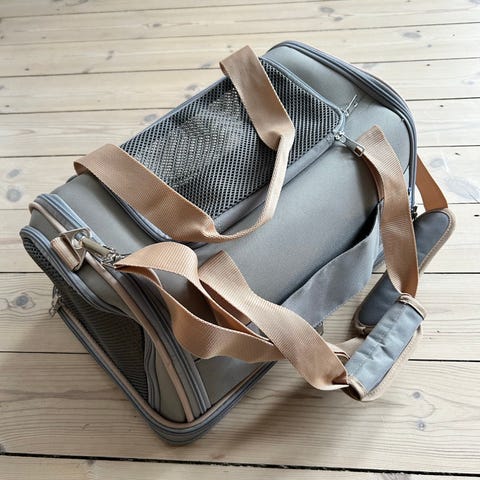 Transporttaske til hund i mærke Mælson. Købt til en Bichon havanaise men kun brugt en enkelt gang, da hunden blev hentet som hvalp.
