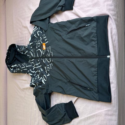 Fin jakke fra dyre- og røgfrit hjem. Kan bruges som en lidt varmere overgangsjakke, da den har polyesterfyld, men er ikke vinterjakke-tyk.