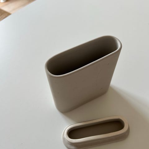 DBKD vægkrukker i hvid keramik. Sættet består af to krukker i forskellige størrelser, begge med afrundet form og hul til ophæng på væggen. Egnede til indendørs brug, for eksempel til planter eller opbevaring af småting. Neutral hvid farve, der passer ind i mange boligindretninger.