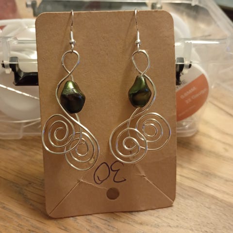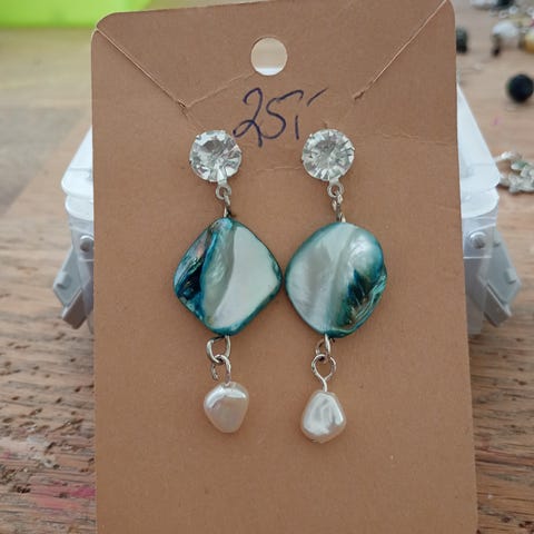 Grønne øreringe med hvid perle og grønne sten