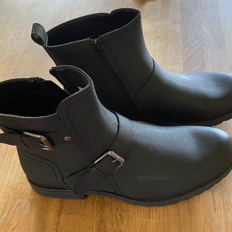 Der er enkelte streger i lakken, der vil kunne ordnes med skosværte. Annoncen kan ikke anføre prisen. Den er 50 kr