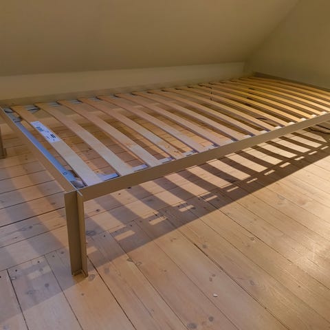 Grå hay connect sengeramme 140x200 med madrads fra Emma (ca. 5 år gammel) fremstår i fin stand. Sælges samlet inkl. lameller