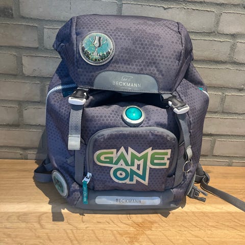 Beckmann skoletaske til 0.-3. Klasse med gynmastiktaske og 2 penalhuse. God brugt stand (mest brugstegn i penalhusene. Alle lynlåse fungerer mv. Ny pris 1250 kr, sælges for 350 kr
