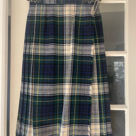 Fra røgfrit hjem. Rød skotskternet plisseret nederdel, se fotos.