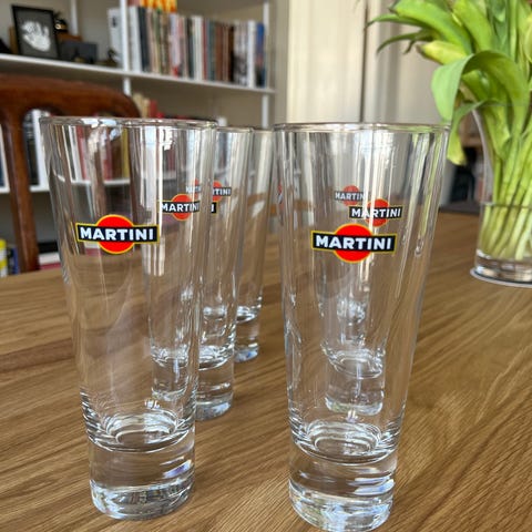 2 stk. Karonis Ouzo glas med tryk i klar glas. Glassene har tryk i blå og rød farve med Karonis-logo og motiv. Købt i Grækenland Velegnet som drikkeglas til ouzo eller andre drikke.