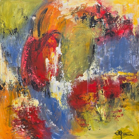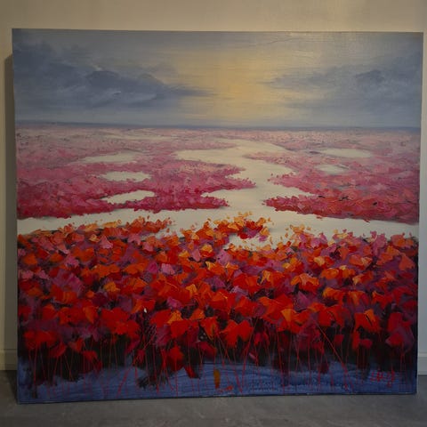 Maleri med farverig skov