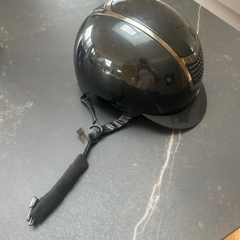 Fin, brugt ridehjelm i sort. Størrelse 51-52 cm.
