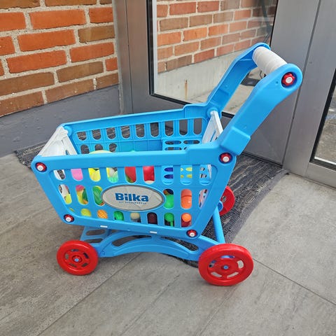 Super fin indkøbsvogn i plastik til børn. Højde 58 cm