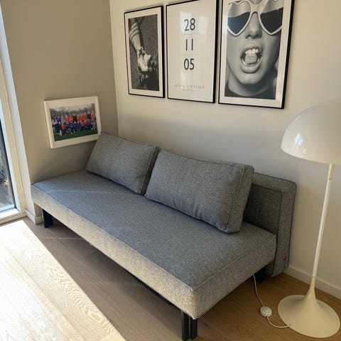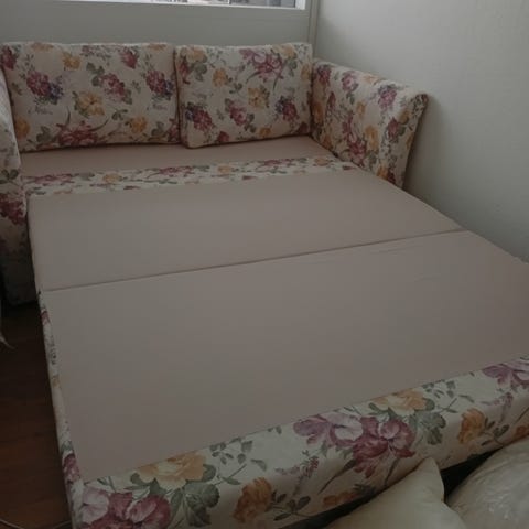 Når sengen foldes ud er sengen 120 cm bred og 200 cm lang.