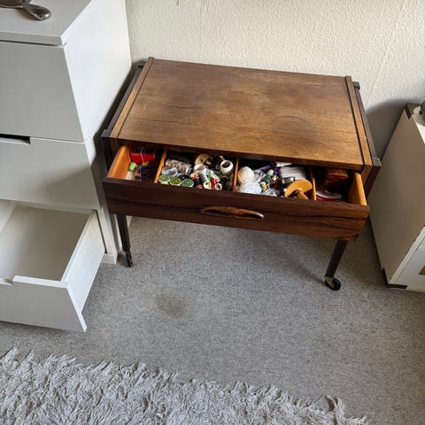 Ukendt mærke sybord i træ med udskæringer