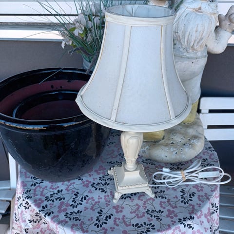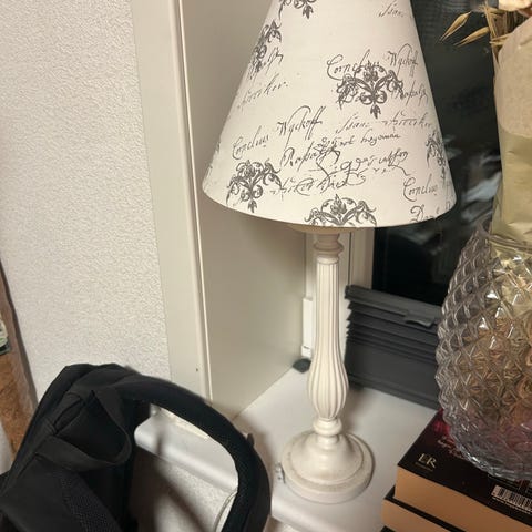 Anden bordlampe, Smuk gammel og sjælden romantisk lampe sælges. Storcharmøren venter på sin udkårne med blomster -chokoladen har han selv spist.