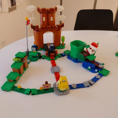 LEGO Super Mario 71362 bevogtet fæstning udvidelsessæt. Sættet indeholder en fæstning med port, platforme, rør og forskellige fjender fra Super Mario-universet. Designet som et udvidelsessæt til LEGO Super Mario startbaner og kan kombineres med andre LEGO Super Mario sæt for at bygge større baner og forløb.