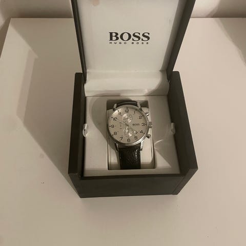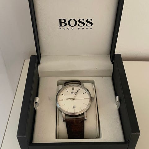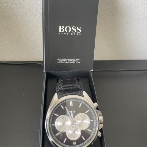 Hugo Boss herreur med sort læderrem