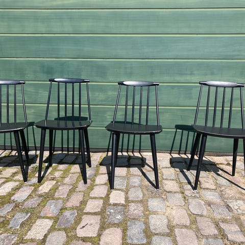 Tre FDB J77 Pindestole stole. Stolene er lidt slidt af tidens brug. Trænger måske til en klat lim hist og her.