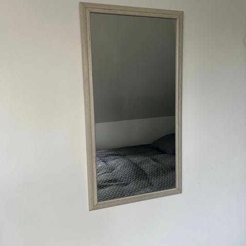 Vægspejl, b: 57 h: 137, Hvid ramme med antik look. Det er KUN RAMMEN der sælges, da spejlet er gået i stykker. Købs pris fra Ilva 1200kr. Denne model findes ikke længere. Kom gerne med et bud.