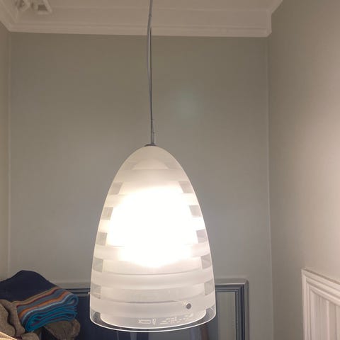 Egnet til ophæng over spisebord, køkkenbord eller i opholdsrum. Passer til standard loftudtag og anvender udskiftelig lyskilde afhængig af fatningstype (E14). Har hvid tekstilledning, wire og lyskilde medfølger.