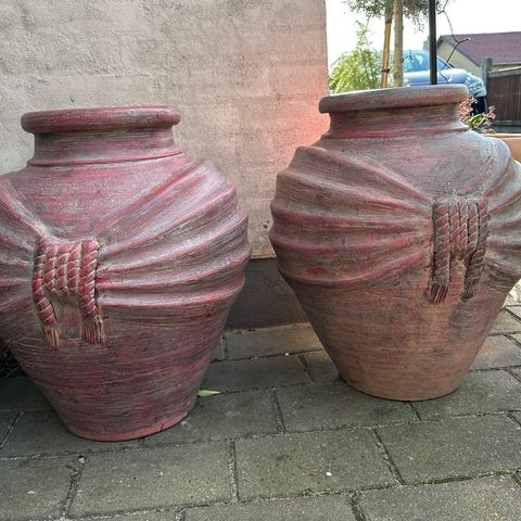 Smukke terracotta-krukker til løg og kartofler