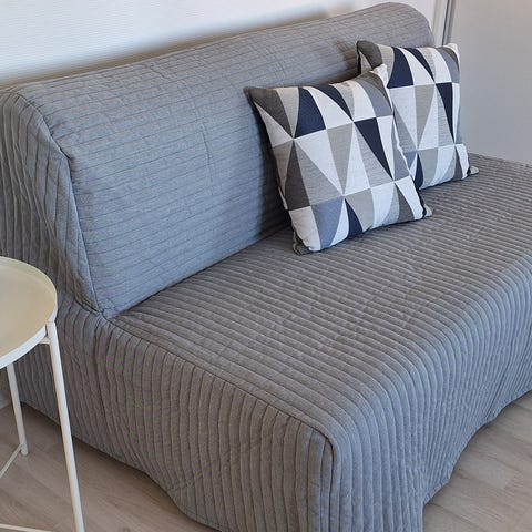 We are selling our guest sofa bed which we covered to protect. It's mainly been used as a sofa, so the pull-out mattress is hardly used.