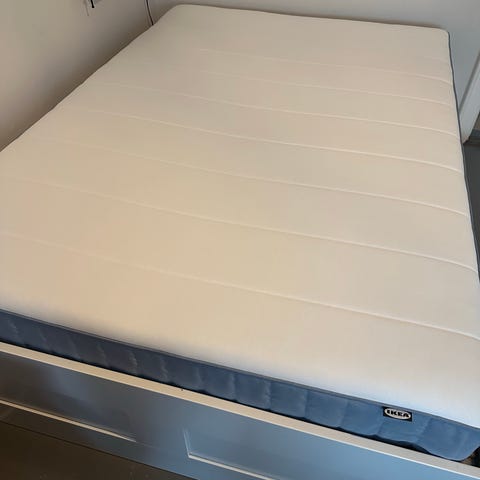 Jeg sælger min madras, som jeg købte til 1500 kr. fra IKEA d. 25/9/2025 (ca. 7 mdr. gammel). Den sælges fordi den ikke var blød nok til mig.