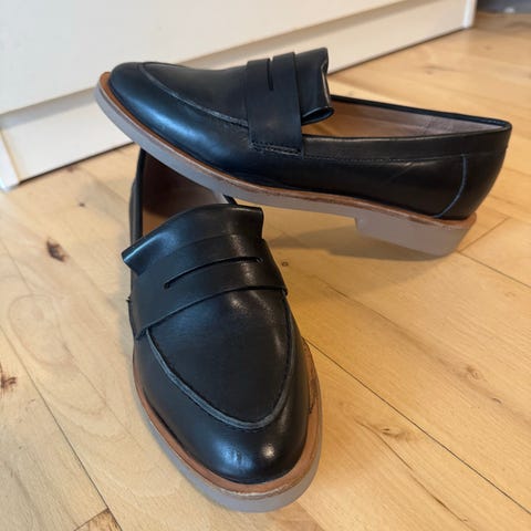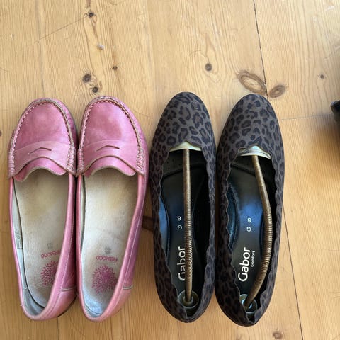 Gabor loafers dame sko i str. 41. Skoene er i sort ruskind og lak med rem over vristen. Indersålen er let polstret for øget komfort, og sålen er mønstret for bedre fodfæste. Velegnet som hverdagssko eller til pænere brug og bare så behagelige at de føles som “sutsko”.