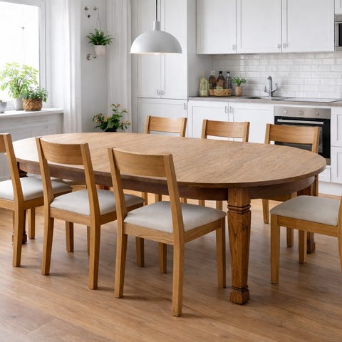 Flot og solidt spisebord i massivt egetræ med tidløst dansk design, der passer perfekt ind i både moderne og klassiske hjem.