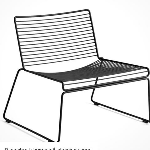 HAY Loungestol i sortlakeret metal med åbne, vandrette lameller i sædet og ryggen. Stolen har en løs, aflange grå pude med to lyse knapper på forsiden. Velegnet som ekstra siddeplads i stue, soveværelse eller entré. Moderne, enkel stil der passer ind i mange typer indretning.