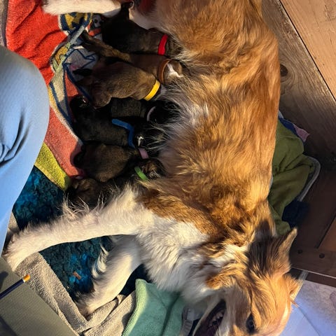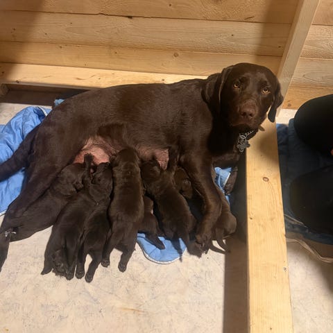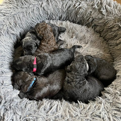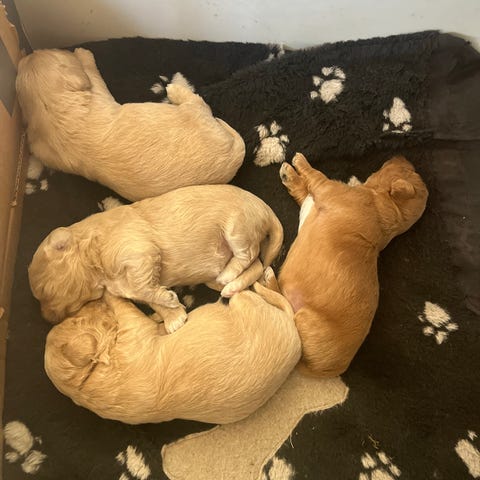 Vores skønne Goldendoodle Else har født 9 søde smukke raske hvalpe den 9 april, 3 piger og 6 drenge(5 af dem er allerede reserveret).