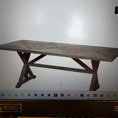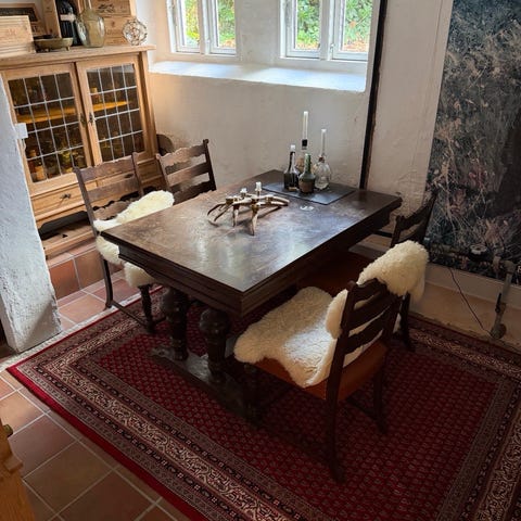 Lækkert spisebord fra Chic Antique 190x90. Der medfølger 6 formstøbte læderstole i fin stand ..samlet 4500,-